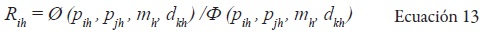 Donde Ri representa la inversa de Mills para aquellos hogares que sí consumen el bien i; mientras que para aquellos hogares que no lo consumen, la inversa de Mills está dada por: