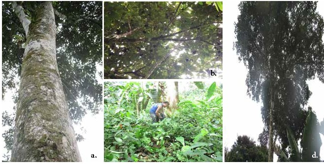 Figure 2 Apeiba..glabra Aubl a and d. Seed trees; b. Crown and fruits of one of the seed trees; c. Seed collection.