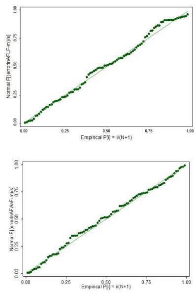 Figuras 6 Gráficos de probabilidad normal de residuos de los modelos exponenciales AFE vs. LF y AFE vs. AnF de G. arborea