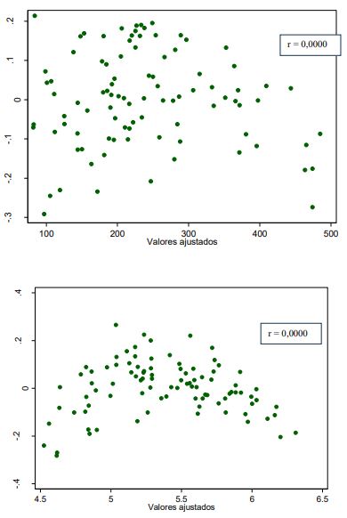 Ello se evidencia en los gráficos de dispersión de residuos vs. los valores ajustados (figuras 7).