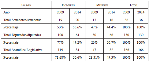 COMPOSICIÓN POR SEXO DE LA ASAMBLEA LEGISLATIVA PLURINACIONAL ELECCIONES 2009 Y 2014