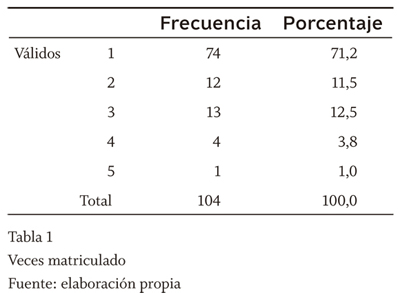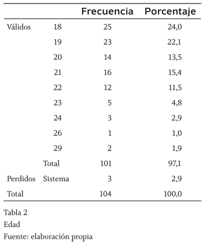 Sus edades van desde los 18 hasta los 29 años (tabla 2), característica predictible por el número de veces matriculado y por tratarse de grupos de mañana.