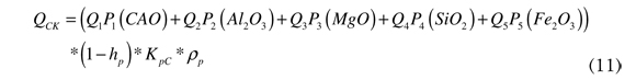 Heat required to form clinker is calculated based on a chemical balance of previously prepared raw materials, based on the formation energy of the min-eralogical compounds present in the clinker. See Equation (9).