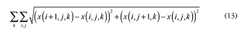 The TV norm measures how much an image varies across pixels so that a highly textured or noised image will have a large TV norm whereas a smooth or piecewise constant image would have a small TV norm. Finally, the parameter y in (12) specifies the relative weight of the constraints versus the data fidelity term.
