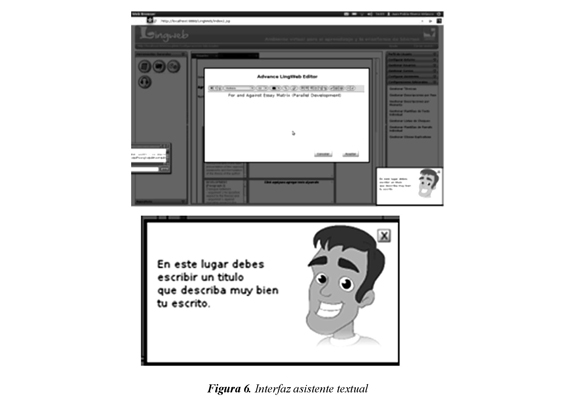 Teniendo en cuenta las necesidades mencionadas anteriormente y tomando como base las herramientas de escritura con las que cuenta Lingweb, se desarrolló un Asistente virtual integrado a la plataforma, que se puede catalogar como un Sistema de Asistencia a la Enseñanza (TAS, por sus siglas en inglés) ya que realiza funciones de apoyo al estudiante en el proceso de producción de textos, generando recomendaciones a nivel léxico, sintáctico, de escritura y macrotextual. La idea es que un usuario pueda detectar las falencias en sus composiciones textuales, antes de ser enviado al profesor para su respectiva calificación (Rivera, 2011).