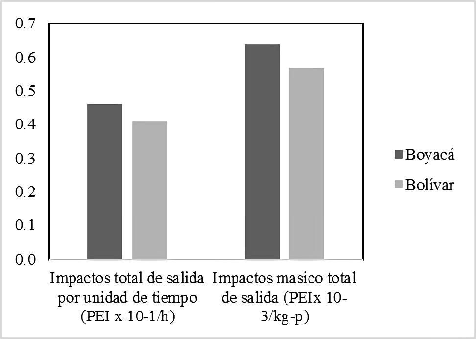 Figura 5 Impactos totales de salida para Boyacá y Bolívar teniendo en cuenta la energía del proceso.