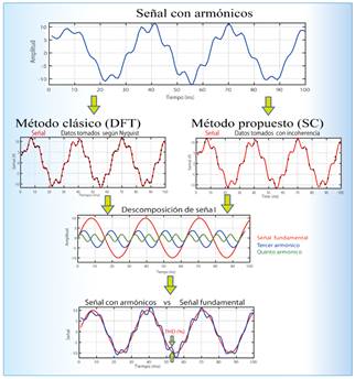 Figura 1 Localización de distorsión amónica en una señal eléctrica mediante DFT y SC.