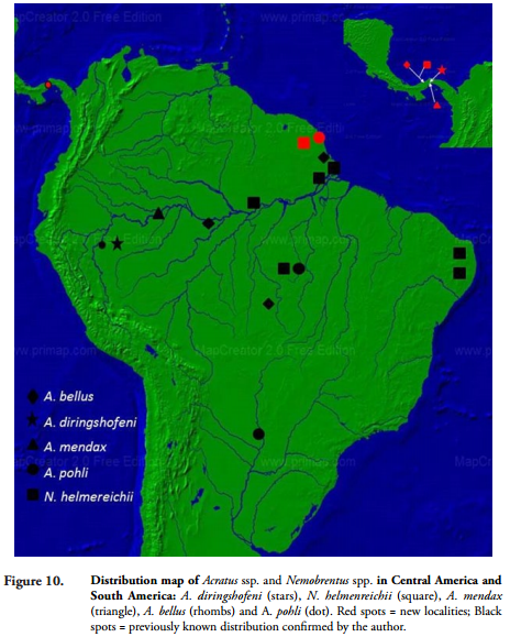Distribution map: Fig. 10: Brazil (SOARES, 1970; SFORZI & BARTOLOZZI, 2004); Panama (first record).
