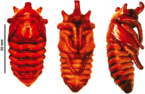 Basado en una pupa macho obtenida desde una cría iniciada en febrero de 2003 que mudó a pupa en mayo de 2006 y fue fijada en mayo 31 de 2006; otra pupa macho obtenida desde larvas criadas desde 2003 y fijadas como pupa en mayo de 2005.