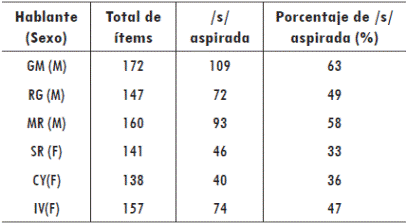 Tabla 2 Aspiración de la /s/ en cada hablante