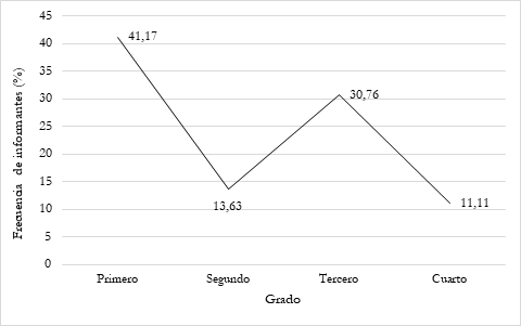 Figura 2 Frecuencia de informantes por curso que valoran su formación en escritura académica como insuficiente.