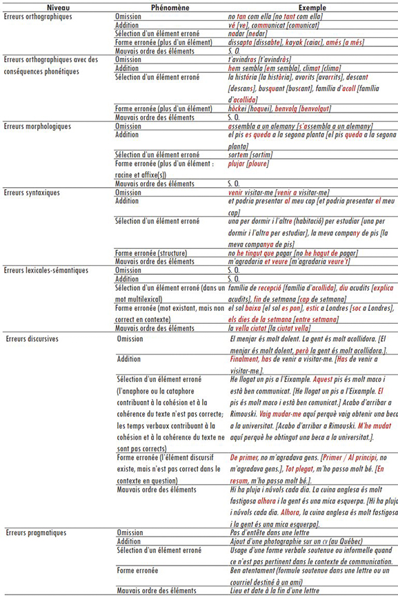 Bien que, dans le cadre de cette recherche, plus de détails sur les aspects étiologiques (interlinguistiques et intralinguistiques) et les aspects communicatifs des erreurs soient à venir, nous pensons avoir confirmé ici qu’une étude systématique des erreurs linguistiques nous permet d’établir les erreurs dans les productions écrites des étudiantes et étudiants en catalan, puis de les caractériser.