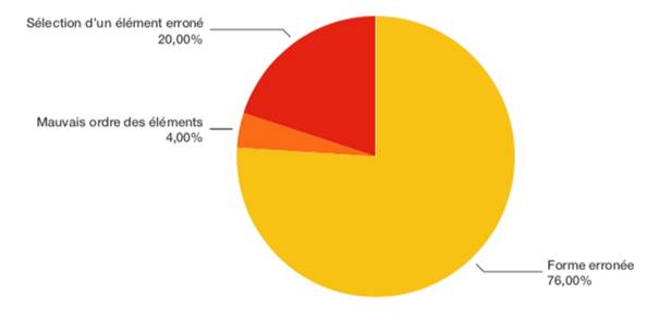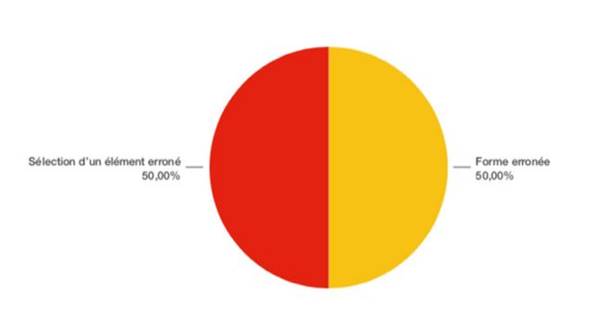 Finalement, au niveau pragmatique, la moitié des cas sont causés par la sélection d’un élément erroné et l’autre moitié par une forme erronée (Figure 8).