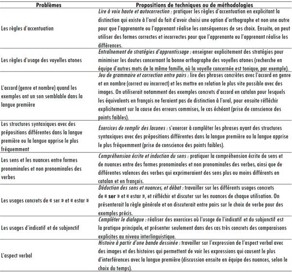 la réalisation de tests pour les techniques proposées dans le but d’observer si elles permettent effectivement de remédier à certaines erreurs récurrentes détectées chez les francophones qui apprennent le catalan langue étrangère au niveau intermédiaire ;