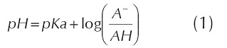 Where pH is the immobilization pH, pKa is the acidic constant of the analyzed group, A- and AH represents the deprotonated and protonated species, respectively. LIGRe is the relation (A-/AH) (Equation 2), and the pKa values of protein's ionizable groups were calculated with the program PROPKA (Li et al., 2005). LIGRe indicates the proportion among reactive and non reactive groups on the ligand surface at the immobilization pH.