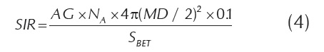 Where AG is the activation grade of the support, NA is the Avogadro´s number, MD is the protein diameter, and SBET is the support surface area.
