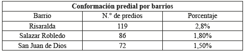 Tabla 5 Conformación predial barrios de estudio*