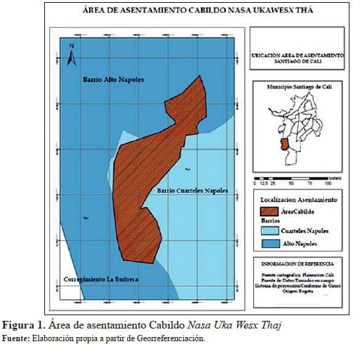 Lo anterior presenta una situación compleja debido a las confronta ciones sociales consecuencia de los altos niveles de pobreza, además de las disputas por la tierra entre colonos, campesinos, indígenas y afro colombianos (Ávila, 2009). La magnitud del problema del desplazamiento indígena, que se acrecienta cada día, debe entenderse no solo por las condiciones históricas, sociales, económicas y políticas por las que ha atravesado el departamento en general y sus regiones en particular, sino también por todo el engranaje estructural del país que lo ha motivado e incentivado. En este amplio sentido se debe hacer referencia a las etnias y a los territorios que habitan para, de esta forma, comprender las dinámicas y las causas particulares del desplazamiento, como también sus consecuencias e impactos en la región o en municipios de expulsión y recepción. Siguiendo a Lapenda (2010), "[a] medida que la migración se consolida, se fortalecen mecanismos de asociación o rechazo, y el espacio habitado puede ser reflejo de tensiones institucionales y culturales" (p. 3). En ese sentido, y siguiendo a Bernal (2012), al trasladarse a los contextos urbanos el pueblo Nasa desea recrear su identidad étnica, su memoria colectiva y su territorialidad. Para el estudio se toma como centro de investigación el territorio de la comunidad perteneciente al Cabildo Nasa Uka Wesx Thaj, que comprende la zona de ladera de los barrios Alto Nápoles y Cuarteles Nápoles pertenecientes a la comuna 18 de Santiago de Cali, Valle del Cauca. Como ya se anotó, esta zona fue urbanizada principalmente de manera informal, y su población vive en condiciones socioeconómicas por debajo de la ciudad formal, lo cual se ve reflejado en la predominancia del estrato uno.