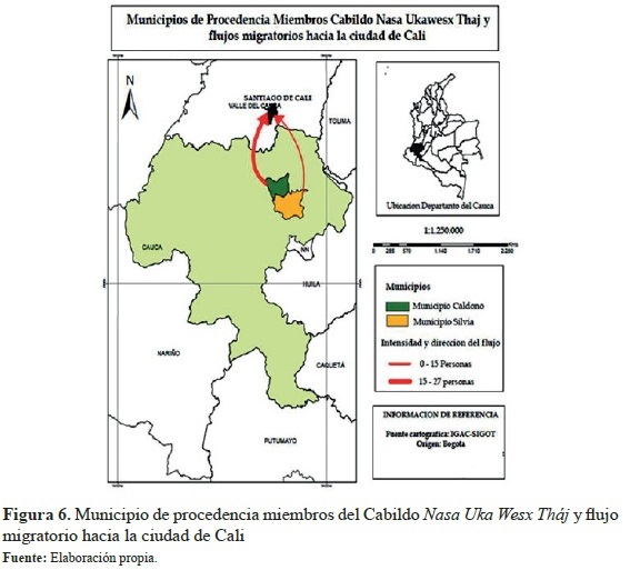 The indigenous population in Colombia has adopted new forms of mobility job opportunities and education opportunities. This paper was developed in the context of the Nasa native community belonging to the local government council called Uka Wesx Thaj, a group of natives from the Cauca region, currently located at the southwestern side of the city of Santiago de Cali. The methodological approach was based on qualitative techniques through indepth interviews and research on participatory action. The subject of this paper is to analyze the migratory process by the above referenced native community towards a local government council legalization as a process of revindication and cultural strengthening from 2010 until today. This study found that the migratory process was, through family networks, influenced by the search of education and job opportunities besides the forced displacement caused by waves of violence experienced in the Cauca region.