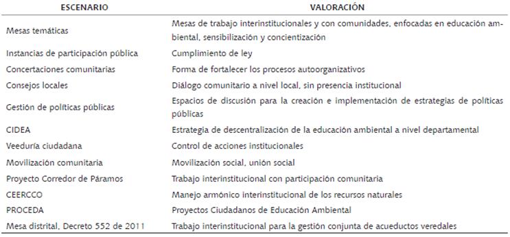 TABLA 3 ESCENARIOS DE DIÁLOGO Y PARTICIPACIÓN EN EL COMPLEJO DEL PÁRAMO SUMAPAZ-CRUZ VERDE