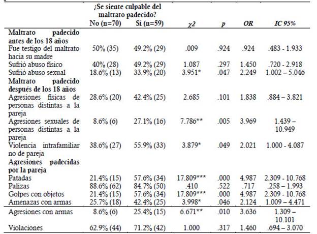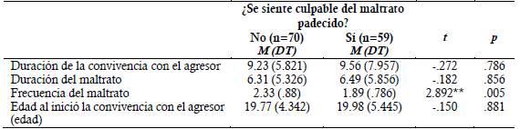 Tabla 3 Relación entre el sentimiento de culpa y variables relacionadas con la situación de maltrato.