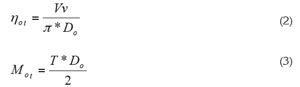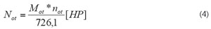 La potencia requerida para el accionamiento de los órganos de trabajo Not (Ec. 4), se calculó a partir del torque (parmotor) Mot y las revoluciones not; expresado en caballos de fuerza (HP).