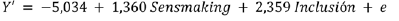 Siendo ambos coeficientes significativos y relevantes (sensmaking: 95% CI (0,380 a 2,341); z-Val = 2,75; p-valor < 0,001; VIF = 1,07; Inclusión: 95% CI (1,267 a 3,451); z-Val = 4,23; p-valor < 0,001; VIF = 1,07).