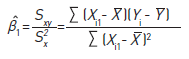 Donde SXY es la covarianza muestral; SX² es la varianza muestral de Xi1;