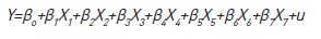 Donde Y es la tasa de crecimiento del PIB per cápita departamental; Xk son las variables independientes o explicativas; ϐ o es el intercepto; ϐ k son los parámetros o estimadores asociados a cada una de las 7 variables independientes especificadas en la tabla 1; y u es el término de error o perturbación.