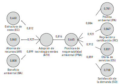 | Adopción de tecnologías verdes (ATV) | Estructura de costo (EC) | 4,225 | 1,342 |
