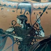 Figura 1 "Atenea llevando la égida con flecos de serpientes, hidria ática de figuras negras", (ca. 540 a. C). Atribuida al pintor Euphiletos. Paris, Bibliothèque National. Wikipeadia. Web.