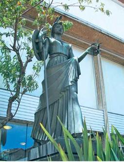 Atenea es una figura cultural importante. Protagonista o personaje de muchas de las grandes obras literarias de la tradición helena, ha traspasado las fronteras de la cultura griega y ha alcanzado presencia incluso en nuestra época y ciudad (figura 3). A pesar de la permanencia y familiaridad con que nosotros hoy invocamos a Palas Atenea, los significados que tenemos de ella no son los mismos que los que tenían los griegos. Sin embargo, no sobra aclarar que nos ocuparemos de sus implicaciones en la Antigüedad.