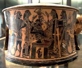 Figura 6 "Nacimiento de Atenea. Exaliptro ático (trípode de figuras negras)", (ca. 570-560 a. C.). Wikipedia. Web.