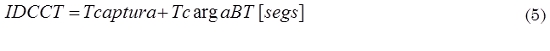 Indicador de duración proceso de captura y carga de registros a la base temporal (IDCCT): Mide el tiempo invertido dado una arquitectura específica en desarrollar captura de datos de las fuentes y la carga de los mismos a la base temporal, como se muestra en (5).