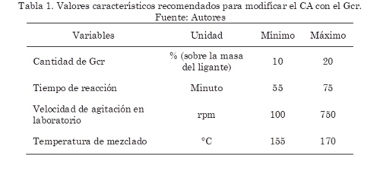 Un estado del conocimiento completo sobre el tema, la descripción de las ventajas y desventajas de la utilización del asfalto modificado con Gcr, así como la justificación técnica, económica y ambiental de dicha utilización en Colombia puede ser consultada en Rondón (2011).