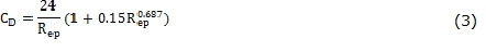 Siguiendo la correlación de Di Felice [13], la fuerza de arrastre fD es evaluada como: