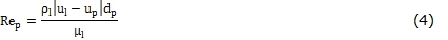 El número de Reynolds de la partícula, Rep, se define en base a la velocidad relativa entre el agua y la partícula, como: