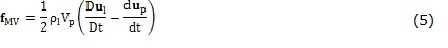 Las fuerzas no estacionarias fMV y fp están asociadas a la inercia y a la aceleración del fluido alrededor de las partículas. Ellas son llamadas la fuerza de masa virtual y la fuerza del gradiente de presión, respectivamente y se pueden calcular a partir del potencial de flujo que rodea las partículas [14].