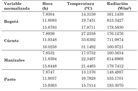 Posteriormente, se desnormalizan los datos mediante la ecuación (12) y se presentan en la Tabla 3.