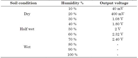 We can observe the ranges od humidity or dryness of the terrain that can be monitored by the Lucy 3 programmable card in Table 1.