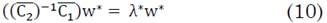 (9) es evidentemente un problema de autovalores generalizado [40]. Los multiplicadores de Lagrange, 𝜆*, que satisfacen (9) son en consecuencia los autovalores generalizados. Si
