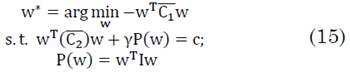 está acompañado de un término de regularización que permite que sea invertible. Esto permite introducir el problema de optimización de patrones Comunes Espaciales Regularizados (RCSP), el cual en forma general se plantea de la siguiente forma (15):