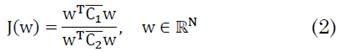 son matrices promedios de covarianza para la clase 1 y 2 respectivamente, en la teoría de filtros espaciales es posible construir de forma supervisada un filtro espacial W con ayuda del cociente de Rayleigh (2):