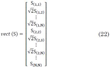 Para la construcción de filtros y de clasificadores en el espacio tangente, la matrices de covarianza proyectadas, las cuales son simétricas, Si,j = Sj,i, pueden vectorizarse utilizando únicamente su parte triangular superior (22), como en [14].