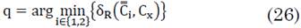 Por otra parte, si se conserva la representación de las señales EEG en sus matrices de covarianza, con ayuda de (17), (18) y (19) se puede implementar un clasificador riemanniano denominado de mínima distancia a la media (MDM) el cual se expresa en (26). En este caso no se utiliza ex sino Cx asociado a Ex: