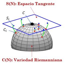 Fig. 3 Espacio tangente de una matriz de covarianza C, la cual pertenece a la variedad Riemanniana C(N). Si es la proyección de Ci en el espacio tangente de C