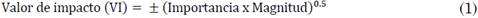 Además, se identifican correctamente a los impactos más significativos y a los factores de medio impactados [16]. Para la valorización del impacto se aplicó (1).