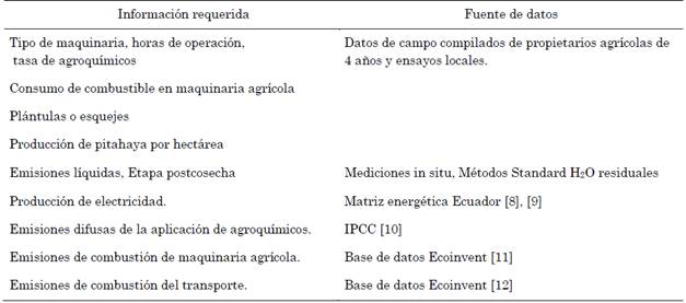 Los residuos de cosechas y otros que se generan se cuantificaron in situ, durante el ciclo de producción. En el caso de las emisiones gaseosas se calcularon, a partir del inventario, y empleando los factores de emisión del IPCC (para la aplicación de los agroquímicos), y de la base de datos Ecoivent (para el transporte).