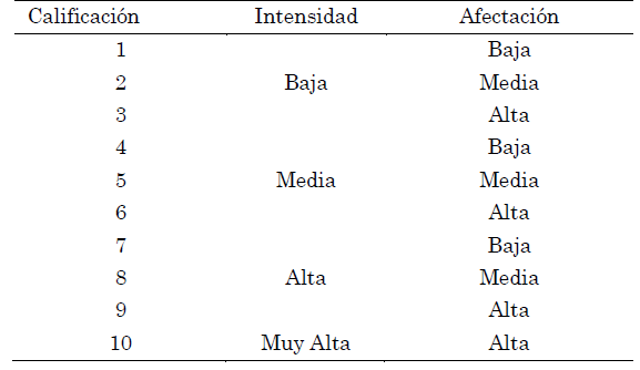 Por su parte, para determinar el valor de importancia se aplicó (2).