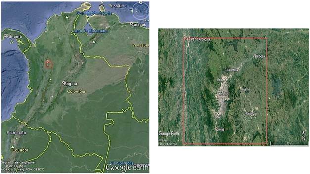 El área de estudio se encuentra ubicada en el departamento de Antioquia, al noroccidente de Colombia y abarca la región del Área Metropolitana del Valle de Aburrá con sus diez municipios (Caldas, La Estrella, Sabaneta, Envigado, Itagüí, Medellín, Bello, Copacabana, Girardota y Barbosa), así como algunos municipios de la región del Oriente Antioqueño (Figura 1).